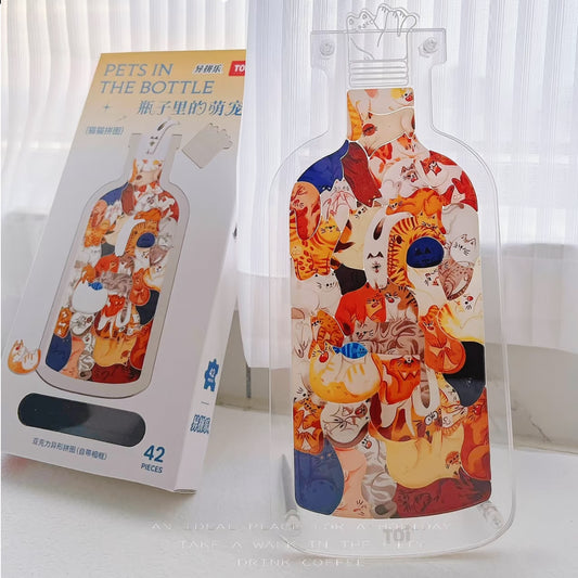 PETS IN THE BOTTLE Cats Animal Shaped Acrylic Puzzle